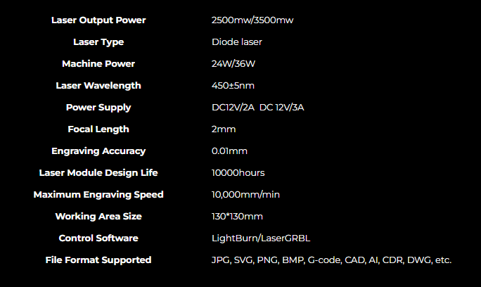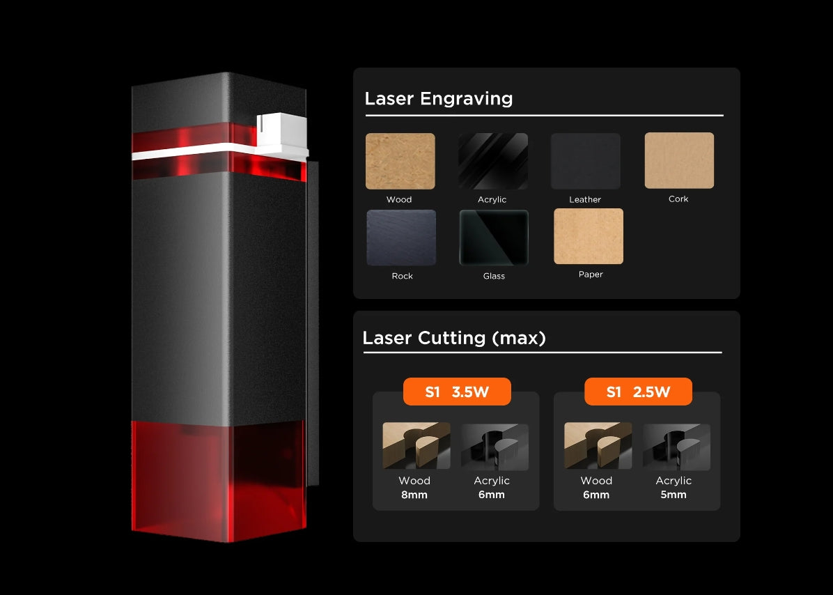 The 2.5W/3.5W is not only more sophisticated in engraving, it can engrave more than100 materials, but also has comprehensive cutting capabilities.